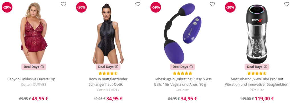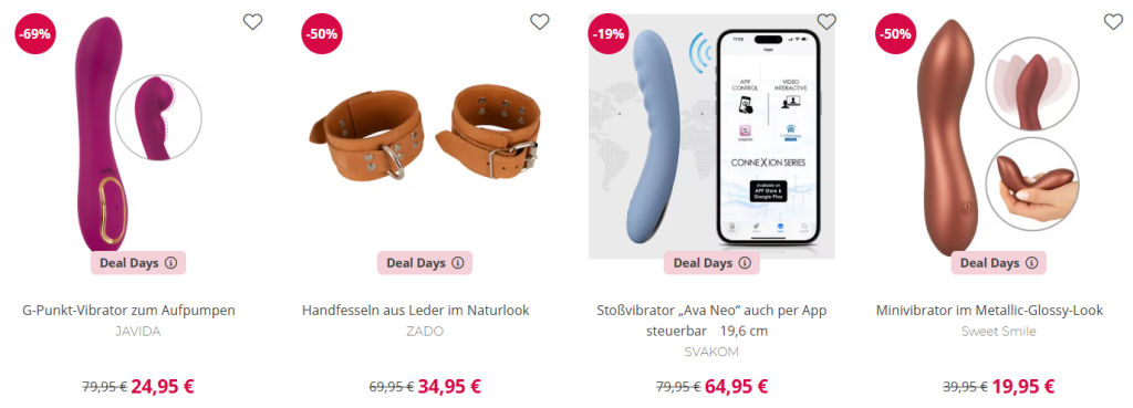 Unschlagbare Rabatte auf ausgewählte Highlights inkl. Svakom – auch auf beliebte Marken! Ob verführerische Dessous, aufregende Toys oder sinnliche Pflege – spare und genieße. Hier könnt ihr bis zu 69% sparen!