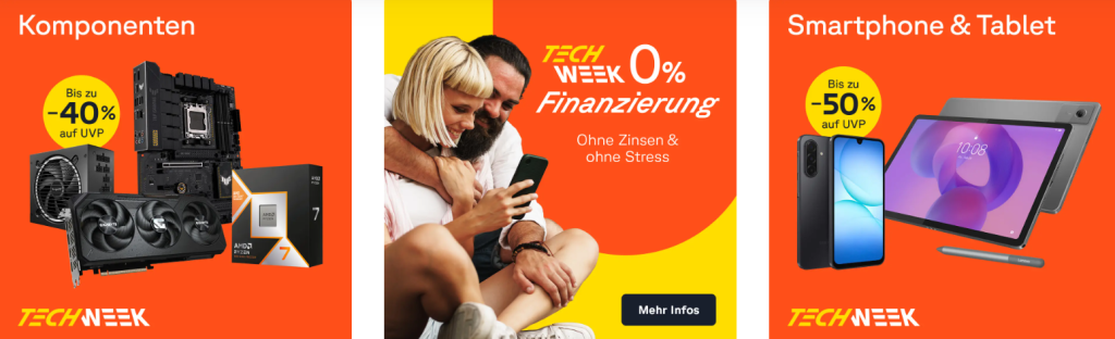 Endlich ist es wieder so weit! Vom 26. Februar bis 11. März 2026 lautet das Motto: Deals, Deals, Deals – solange der Vorrat reicht. Denn in unserer TECH WEEK erwarten dich über 700 reduzierte Produkte. Schnell sein lohnt sich, da unsere Angebote nur in begrenzter Menge verfügbar sind. Spare jetzt bis zu 55% Rabatt gegenüber der UVP!