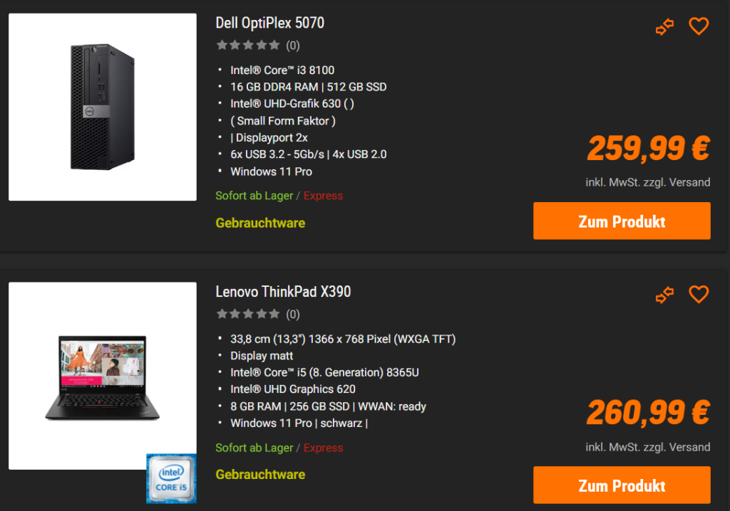 Notebooks, Tablets und Co. zu günstigen Preisen – Du hast die Wahl zwischen vier Qualitätsstufen zu reduzierten Preisen. Jeder Artikel wurde wiederaufbereitet.