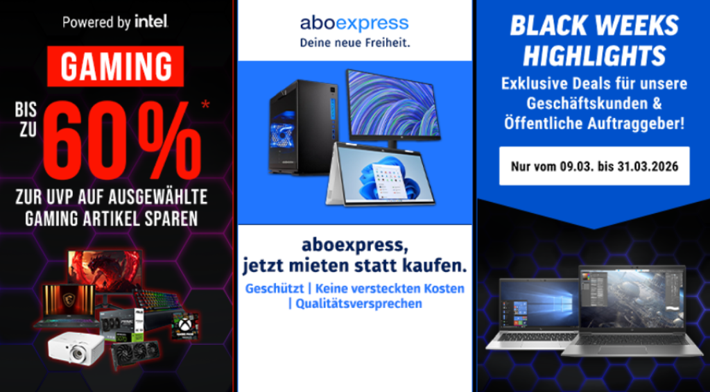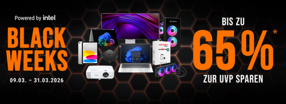 BIS ZUM 31.03.2026 gibt es bei Notebooksbilliger.de die BLACK WEEKS – hier spart ihr bis -65%! Nur auf ausgewählte Produkte.