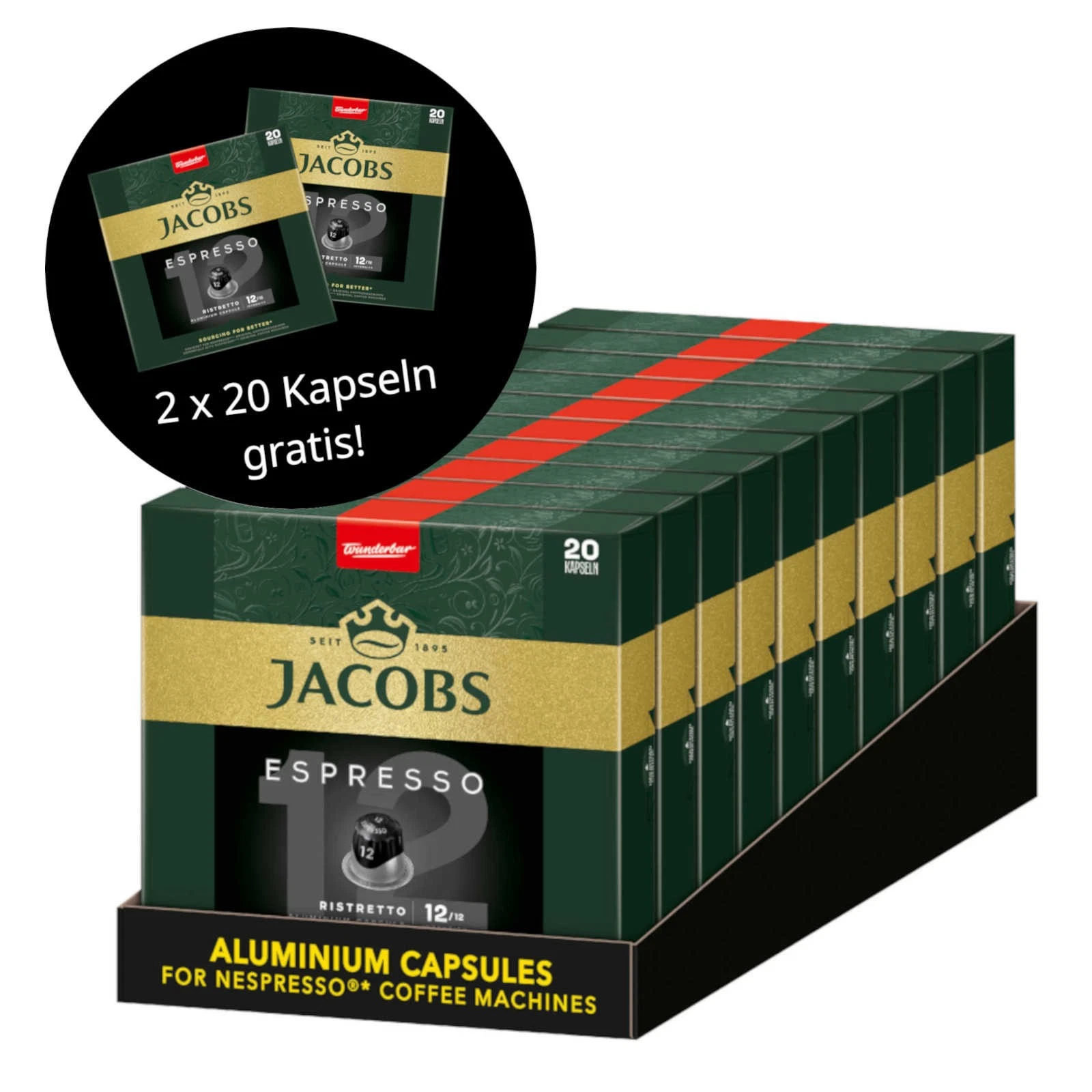 JACOBS Kapseln Espresso 12 Ristretto 10x 20 Nespresso®* kompatibel +2x 20 gratis, aktuell bei