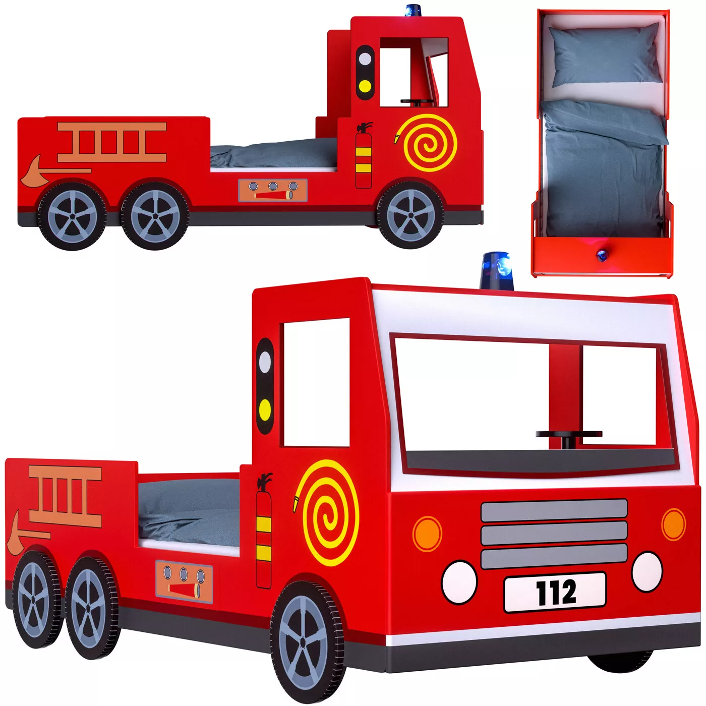 Helden schlafen nicht, sie tanken Energie! Das rote Feuerwehrbett von CASARIA® macht aus jedem Kinderzimmer einen Abenteuerspielplatz. Auf einer großzügigen, komfortablen Liegefläche von 200×90 cm können die Kleinen nicht nur friedlich schlafen, sondern auch ausgiebig toben – das Bett ist bis zu 120 kg belastbar.