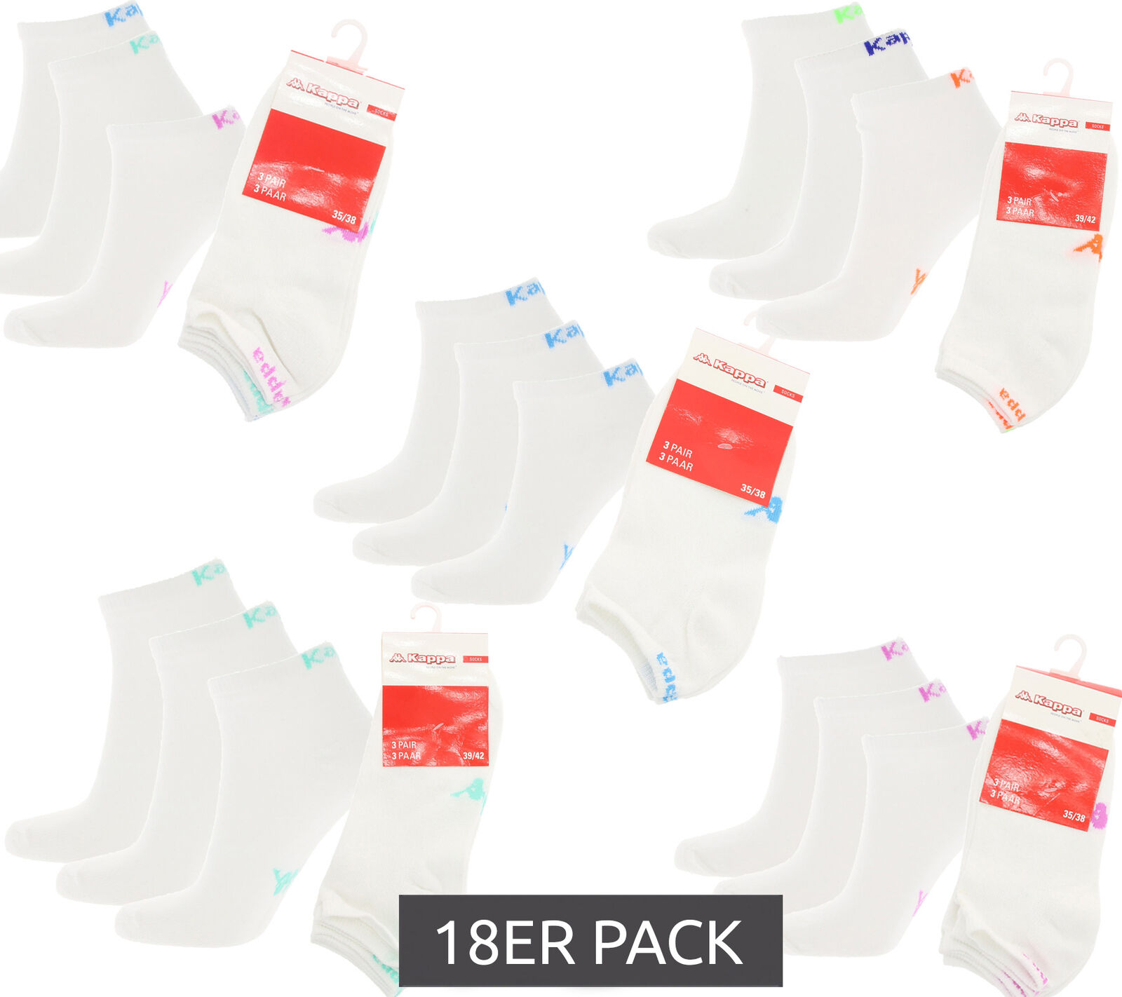 - hochwertige Socken von Kappa im praktischen 18er Vorteilspack (geliefert werden 6x3er Packs)