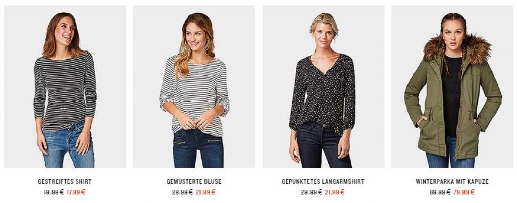 TomTailor: Bis zu 70% im SALE + 40% Extra-Rabatt auf bereits reduzierte Artikel