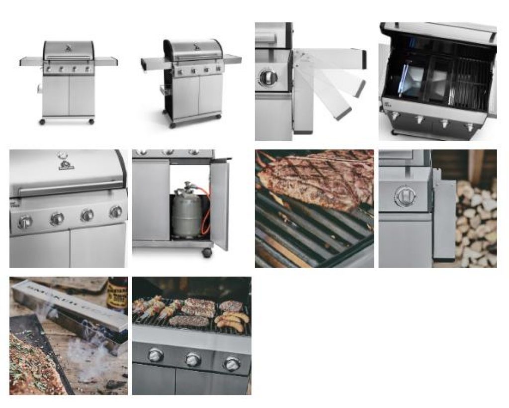 ○ Highlights: 2 einklappbare Seitenablagen mit je 43 x 33 cm, Flaschenöffner am Korpus, Edelstahlbrenner inkl. Flammenverteiler in V-Form