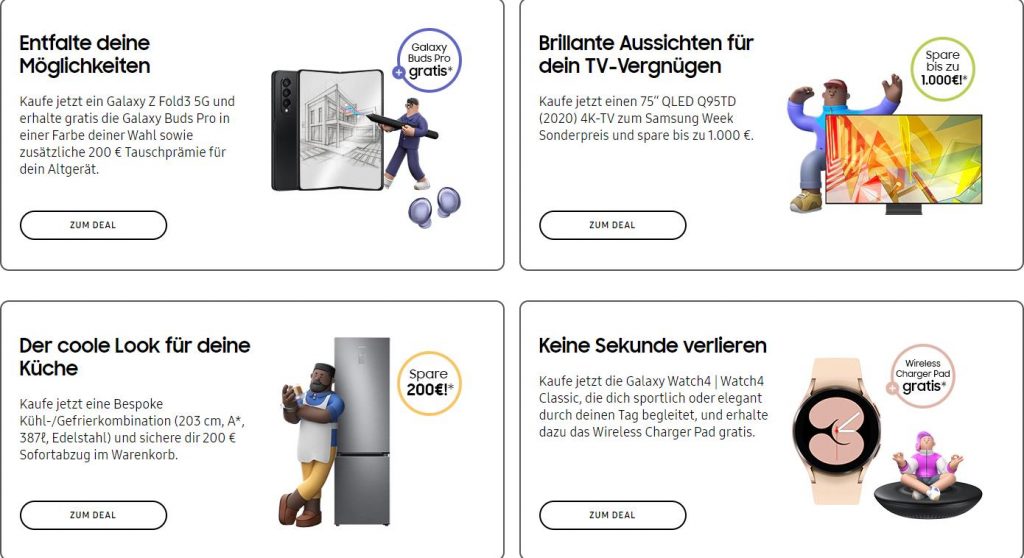 Hier findet ihr viele begeisternde Deals in der Samsung Week auf einen Blick. Findet den Stil, der zu euch passt und entdeckt die Vielfalt der Produkte.