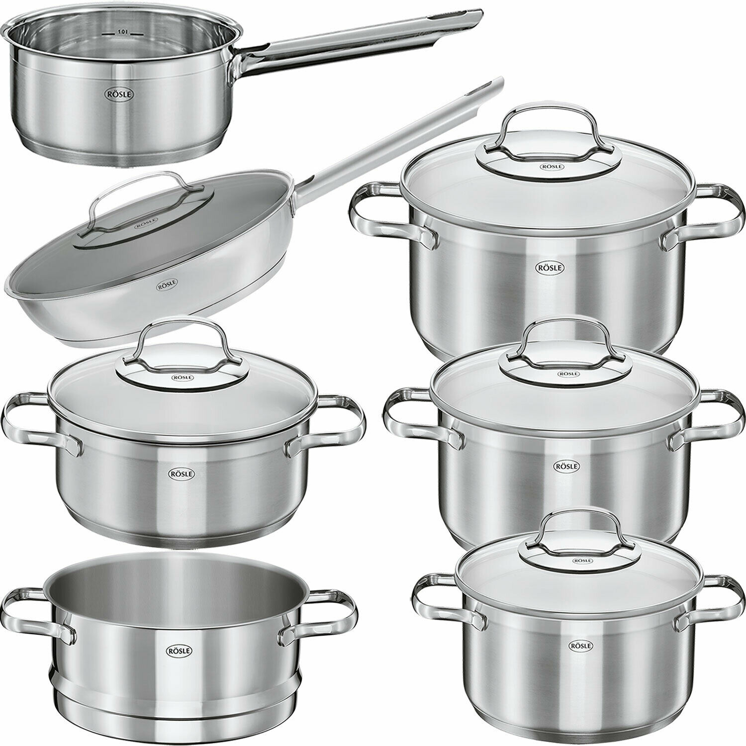 - Rösle Premium Profi Topfset Elegance mit 5 Töpfen, Dampfeinsatz und Antihaft-Bratpfanne