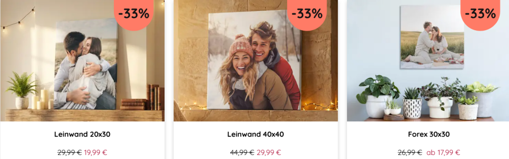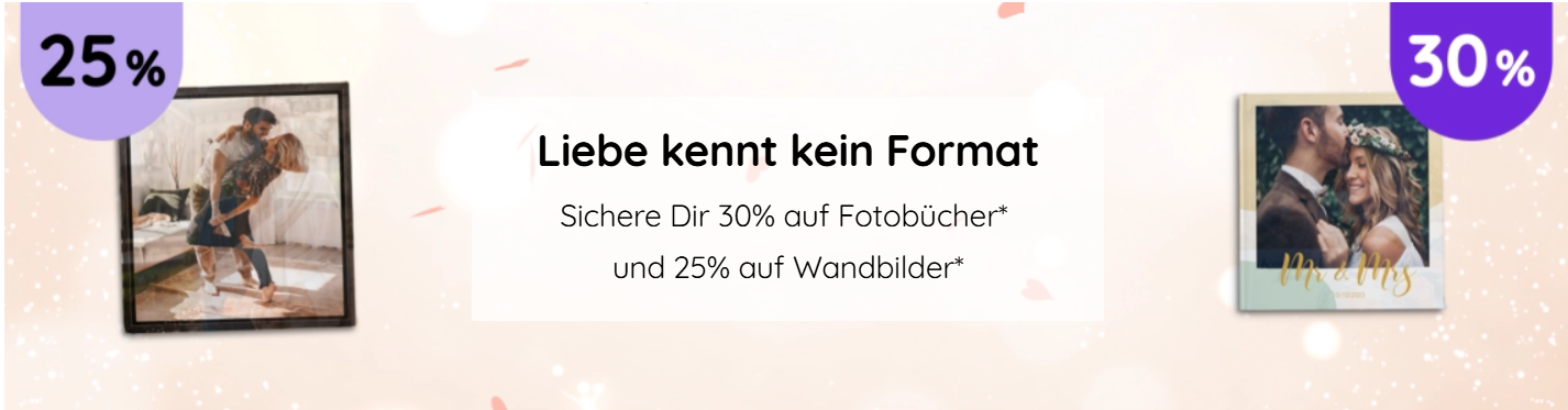 Und weil Liebe kein Format kennt, sparst Du bis zu 30% auf Fotobücher und Wandbilder in allen Größen.