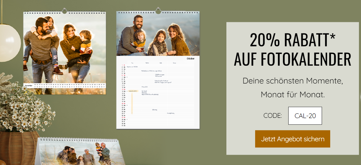 Bis zum 12.11.2023 gibt es bei myphotobook 20% Rabatt auf alle Fotokalender (außer auf Adventskalender & bereits reduzierte Artikel) – Code: CAL-20