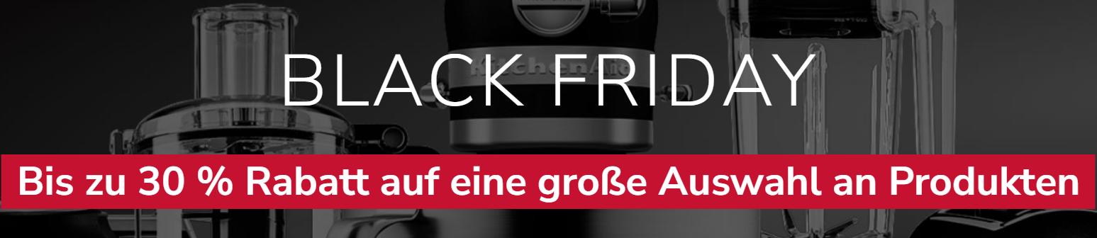 Bis zu 30 % Rabatt auf der gesamten Website zum Black Friday. Nur gültig auf kitchenaid.de vom 12. November bis 8. Dezember und solange der Vorrat reicht.