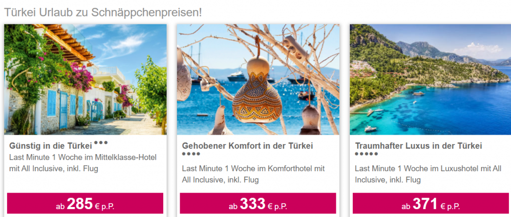 Last Minute Urlaub in der Türkei – Ein kurzer Flug und schon erlebt ihr einen anderen Kulturkreis und sonnt euch an wunderschönen Stränden. Ob Türkische Riviera, Ägäis oder lykische Küste – überall erwarten euch kristallklares Meerwasser, faszinierende Städte und herzliche Gastfreundschaft.