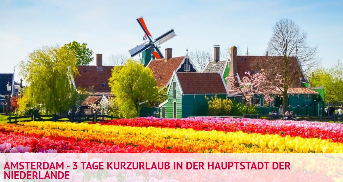 Deal bei eBay WOW! ist der 3 Tage Kurzurlaub für 2 Personen in der Hauptstadt der Niederlande nach Amsterdam für 99,-€ inkl. Versand.