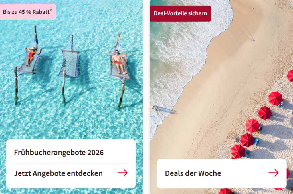 Auf deine nächste Reise sparst du jetzt bis zu 500€: Melde dich vorerst bis zum 31.1.2026 bei unserem Kundenportal MyDERTOUR an, behalte alle deine Buchungen immer im Blick und sichere dir einen Gutschein von bis zu 500€ auf den Reisepreis – der Rabatt wird direkt bei der Buchung abgezogen. Los geht’s!