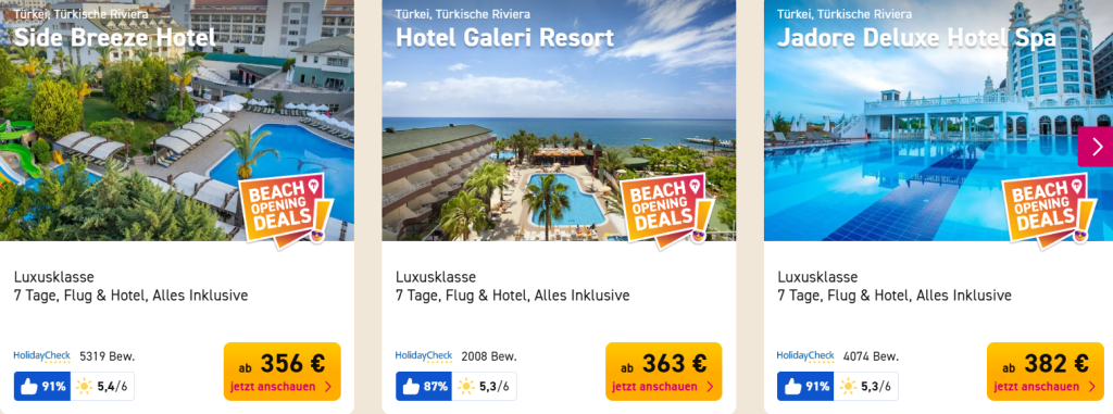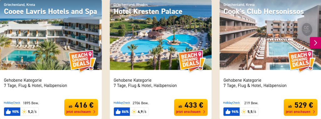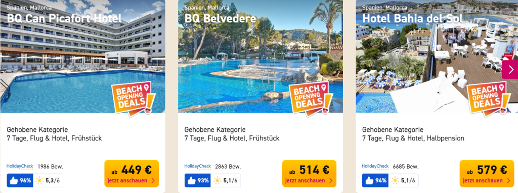 Ob traumhafte Strände, pulsierende Städte oder entspannte Wohlfühloasen – jetzt ist die perfekte Zeit, um den Sommer einzuläuten. Und das Beste: Mit unseren besonderen Beach Opening Deals + tolle Rabatte bis zu 250€ startet wir mit unschlagbaren Angeboten in die warme Jahreszeit!