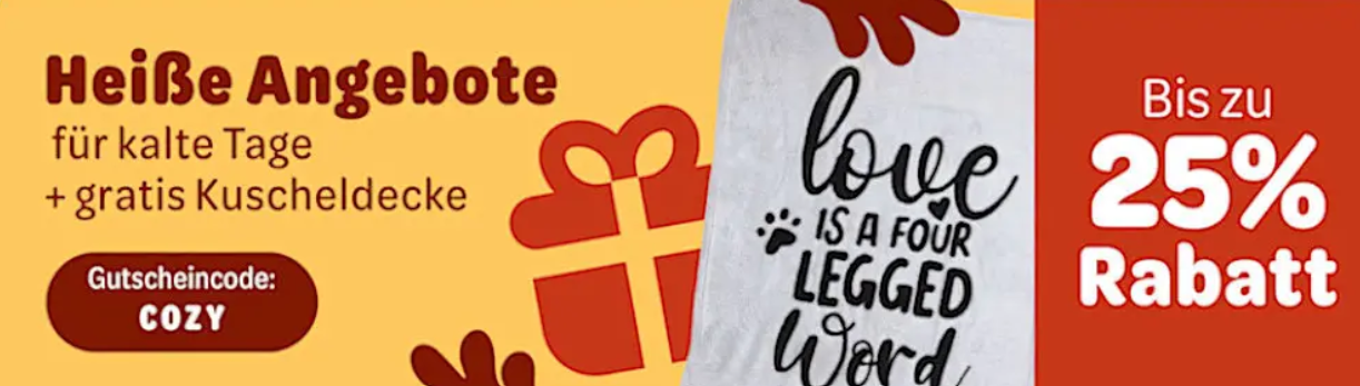 Die kalte Jahreszeit steht vor der Tür – mach es dir und deinem Liebling so richtig gemütlich! Mit deiner gratis Kuscheldecke und bis zu 25 % Rabatt auf ausgewählte Artikel wird dein Zuhause warm und gemütlich.