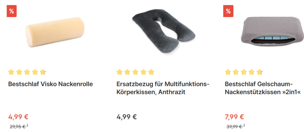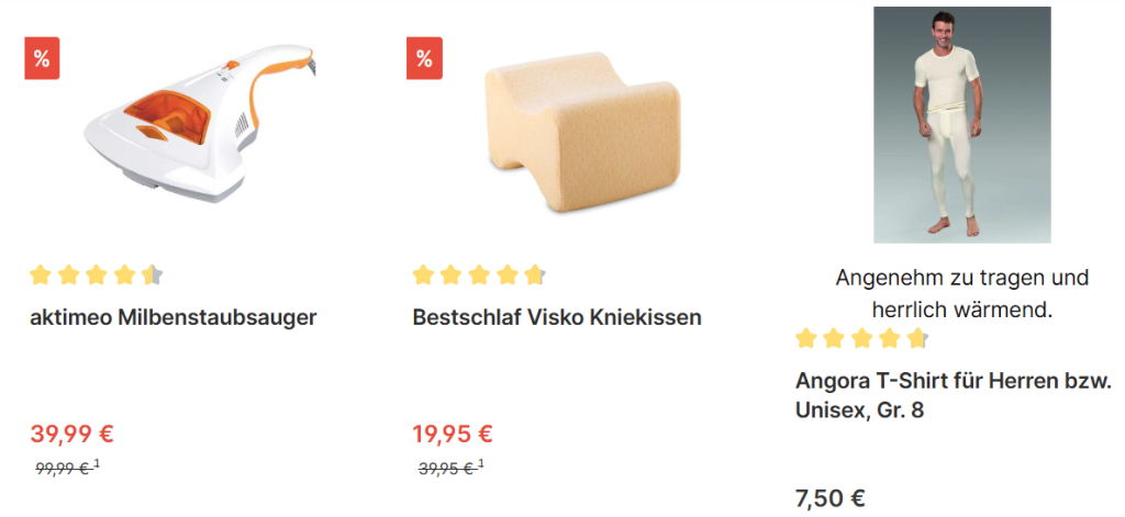 Profitiert von attraktiven Rabatten auf Lattenroste, Kissen, Rollstühle, Bandagen, Fahrradzubehör und vieles mehr. Auch Inkontinenzprodukte, Massagesitzauflagen oder praktische Küchenhelfer sind im Angebot. Die Sale-Kategorie wird regelmäßig aktualisiert – ein Blick lohnt sich immer!