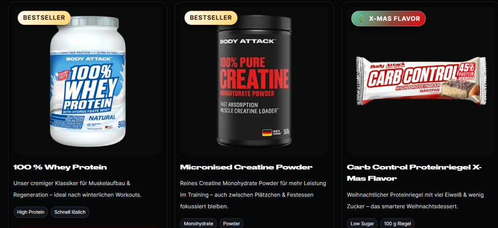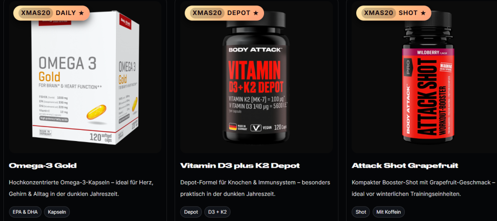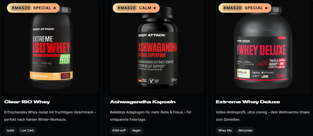Ob Top-Angebote, Neuprodukte zu unschlagbaren Einführungspreisen, Restposten in begrenzter Stückzahl zu günstigen Preisen – im BODY ATTACK Online-Shop wird jeder preisbewusste Sport- und Diätnahrungsfan fündig.