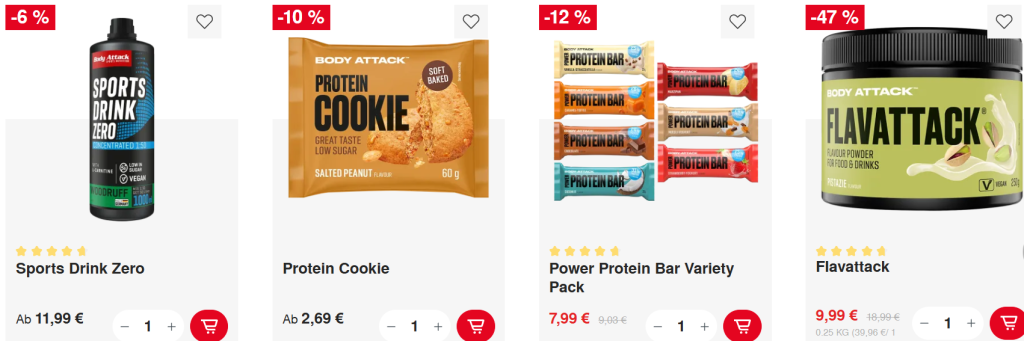 Body Attack – Ob Top-Angebote, Neuprodukte zu unschlagbaren Einführungspreisen, Restposten im Sale oder smarte Bundles der Produkte für deine Ziele – bei uns wirst du fündig und kannst bis zu -60% sparen;)