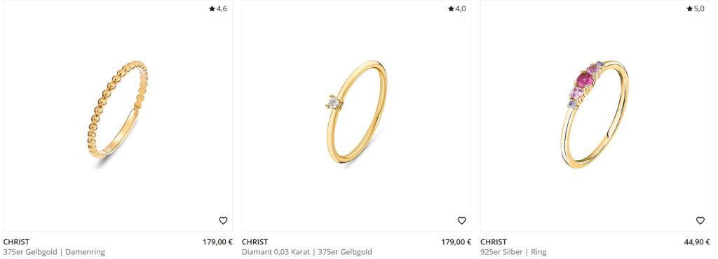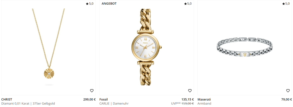 15% Rabatt auf ausgewählte Produkte der Marken Christ Solitaire, CHRIST, Esprit, Guia, Live Diamond, Yamoko, Sector, FAVS, GMK, Guido Maria Kretschmer,
