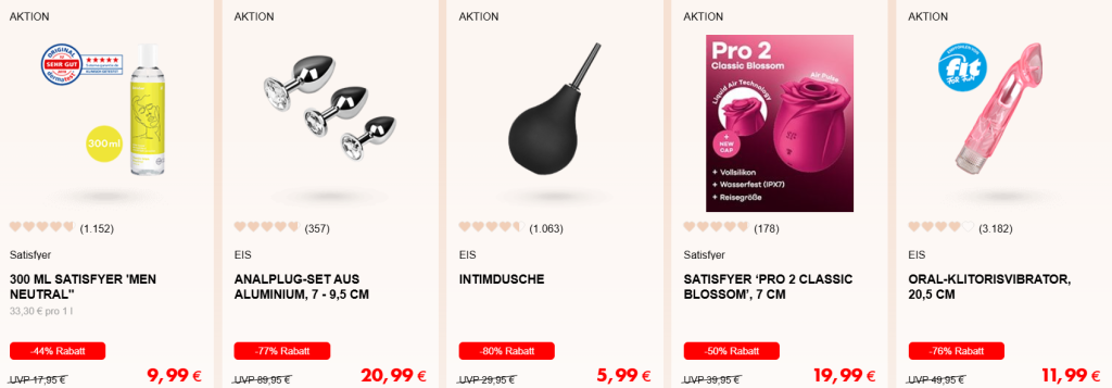 EIS ist bunt, frisch und macht Spaß – genau wie die Liebe auch! Und da die Liebe ja bekanntlich das schönste Gefühl der Welt ist, haben wir es uns mit unserem Online Sexshop zur Mission gemacht, die Liebe zu Dir selbst und zu anderen so prickelnd und spannend wie möglich zu gestalten. Mit unschlagbaren Preisen, großartiger Produktqualität und unserem riesigen Angebot an Sexspielzeugen ist unser Online Sexshop Deutschlands führender Erotik Onlineshop und größter Anbieter für intime Erotik- und Lifestyleprodukte.