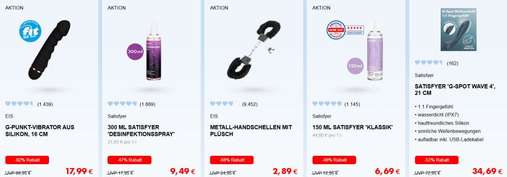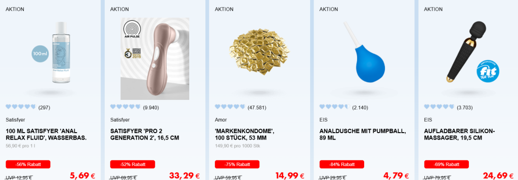 EIS ist bunt, frisch und macht Spaß – genau wie die Liebe auch! Und da die Liebe ja bekanntlich das schönste Gefühl der Welt ist, haben wir es uns mit unserem Online Sexshop zur Mission gemacht, die Liebe zu Dir selbst und zu anderen so prickelnd und spannend wie möglich zu gestalten. Mit unschlagbaren Preisen, großartiger Produktqualität und unserem riesigen Angebot an Sexspielzeugen ist unser Online Sexshop Deutschlands führender Erotik Onlineshop und größter Anbieter für intime Erotik- und Lifestyleprodukte.