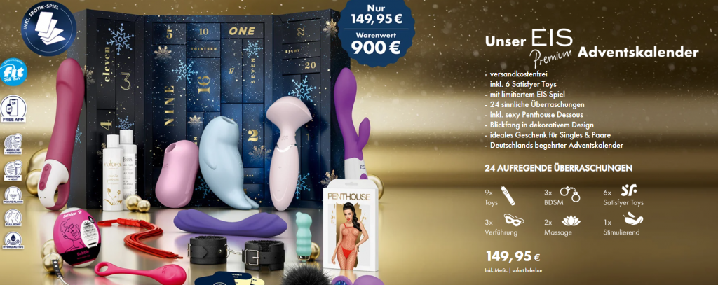 Der Sexy Adventskalender für Paare und Singles ist schon da! Jetzt ab 59,99€ mit einem Warenwert von 650,-€ + Gratis Versand!