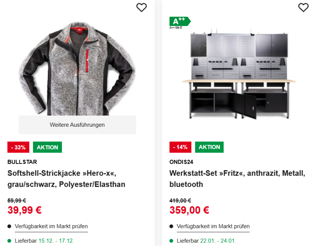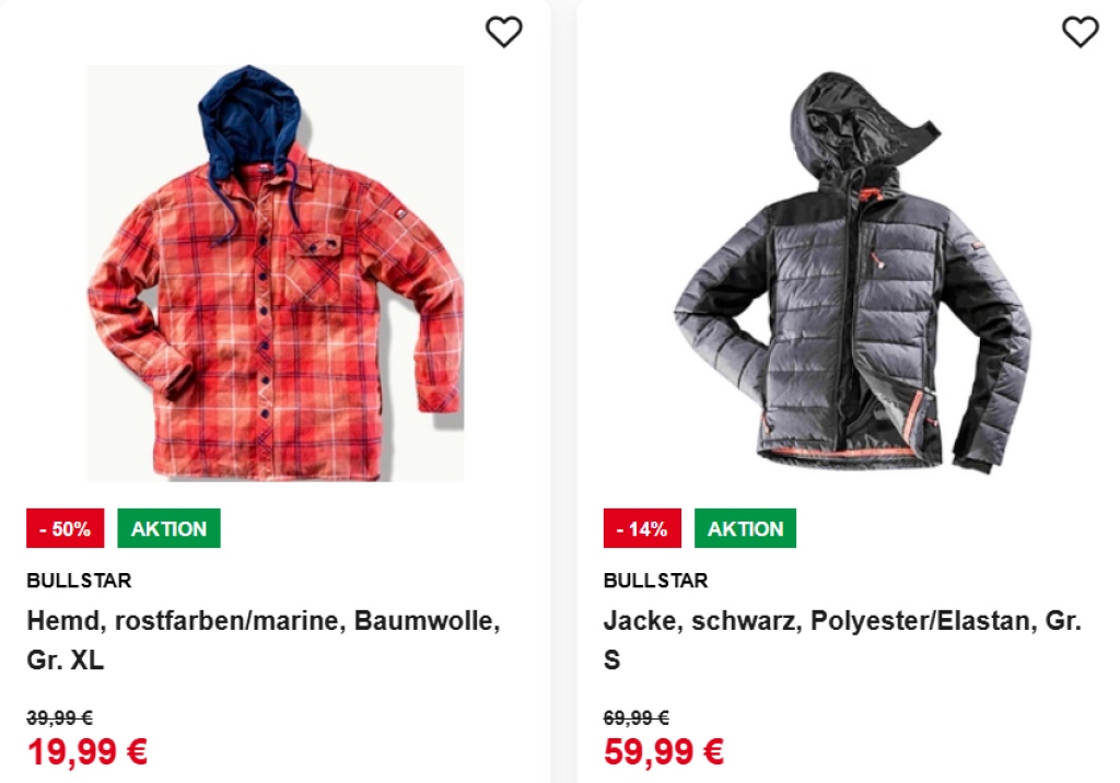 Nur für kurze Zeit: Spare vom 07.12. bis 21.12.2025 online bis zu 50% Rabatt auf ausgewählte Arbeitsbekleidung & Werkstatteinrichtung.