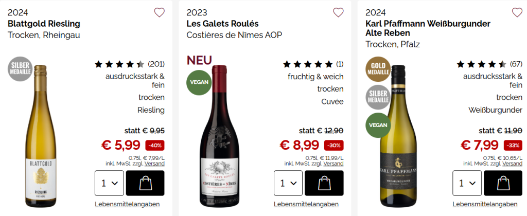 Entdeckt ausgesucht spritzige Perl- und Schaumweine, elegante Weißweine sowie edle Rotweine, mit denen die kommenden Wochen zum unvergesslichen Genießer-Highlight werden. Darunter eine ganze Reihe an Angeboten zu Sonderpreisen, mit denen das Feiern noch mehr Spaß macht.