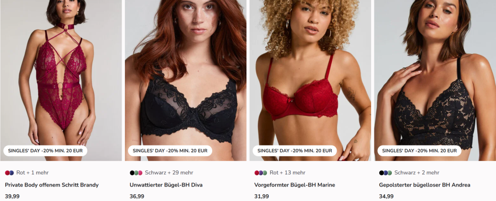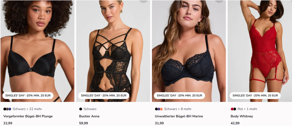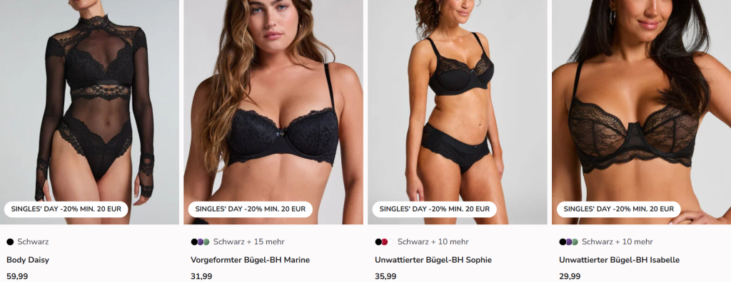 Bei Hunkemöller gibt es aktuell und nur online 20% Rabatt auf ausgewählte Artikel! Ab einem Mindestbestellwert von 20€. Gültig bis 11.11.2025, nur online. Der Rabatt gilt nur für ausgewählte Artikel. Ausnahmen können gelten.