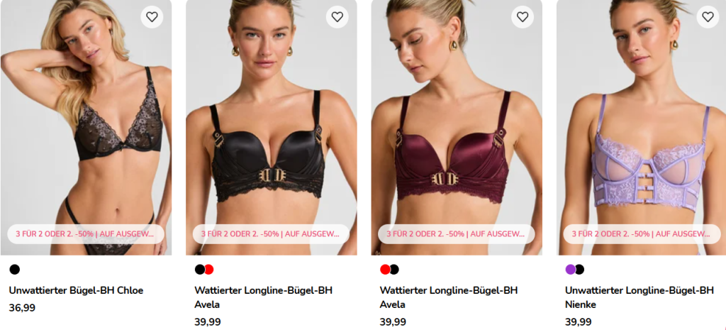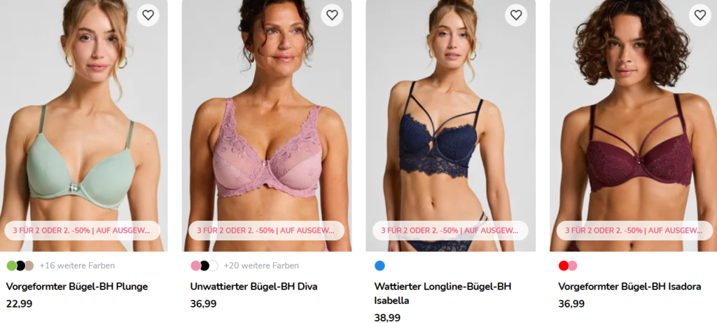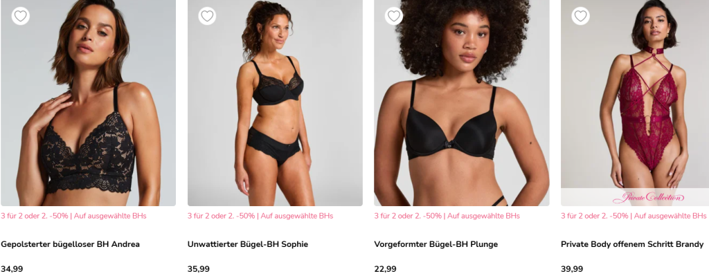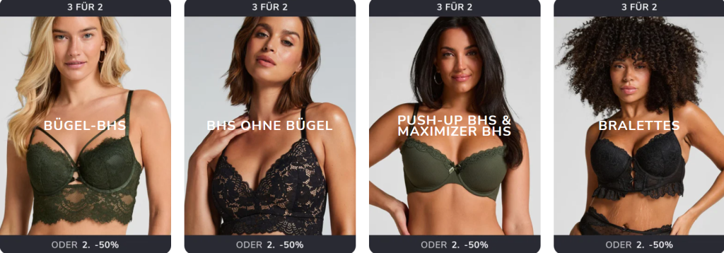 Bei Hunkemöller gibt es aktuell die BRA PARTY – 3. BH gratis oder 2. BH mit 50% Rabatt!