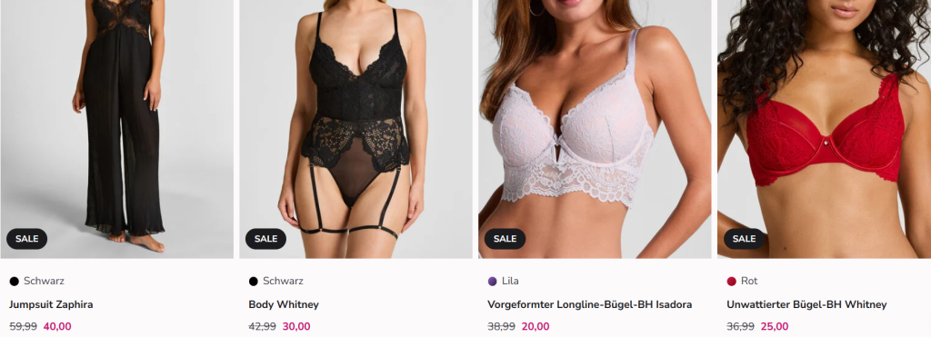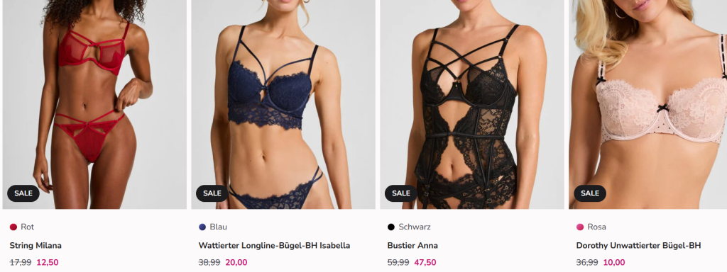 Bei Hunkemöller bekommt ihr aktuell im SALE Finale bis zu 70% Rabatt auf ausgewählte Artikel! Solange der Vorrat reicht, online und in teilnehmenden Geschäften.