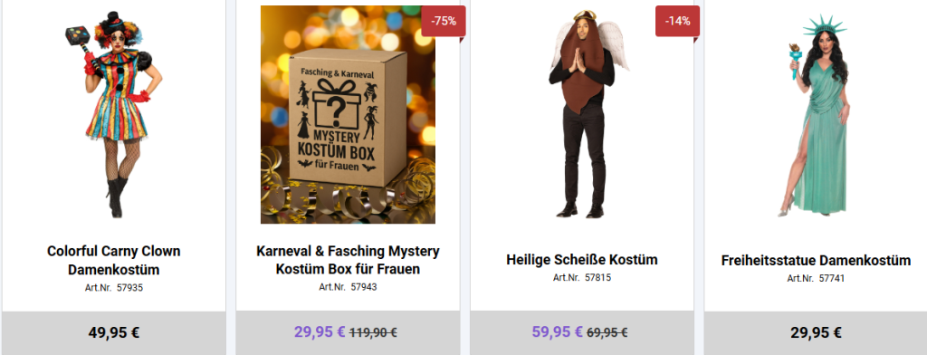 Karneval, Fasching und Mottopartys stehen für Ausgelassenheit, Kreativität und unvergessliche Momente. Die Vielfalt an Kostümen, Accessoires und Dekorationen sorgt dabei für jede Menge Spaß – egal ob für Kinder oder Erwachsene, jeder findet das passende Kostüm für ein unterhaltsames und abwechslungsreiches Fest.