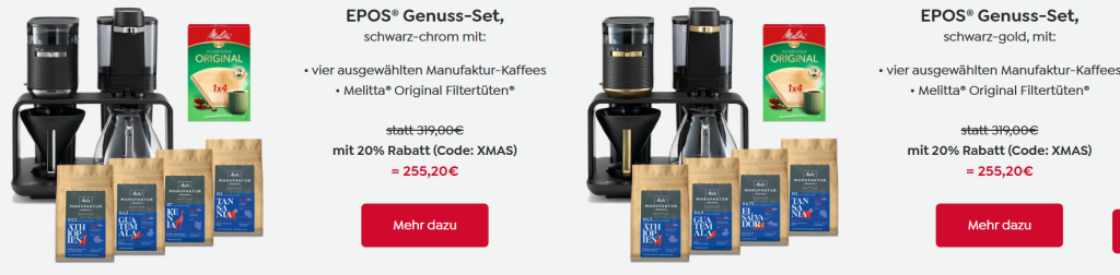 Melitta® Online Shop – Melitta RelaX-Mas – 20% Rabatt auf (fast) alles! Mit der Melitta RelaX-Mas 2025 kannst du die Weihnachtszeit ganz entspannt genießen und shoppen, wann immer du Zeit und Lust hast!