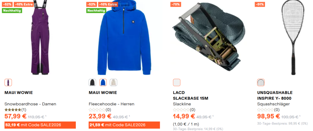 Sportscheck hat den Winter-Sale gestartet und ihr bekommt aktuell bis zu 50% Rabatt + 10% on top auf reduzierte Bestseller! Couponcode: SALE2026 – Mindestbestellwert: 24€ – Gilt ausschließlich für gekennzeichnete Artikel bis 17.01.2026 auf sportscheck.com