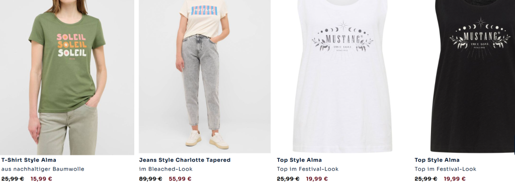 Der Summer Sale bei Mustang bietet aktuell bis zu 50 % Rabatt auf ausgewählte Damen- und Herrenmode – darunter Jeans, Shirts und mehr. Zusätzlich kannst du dir 10% extra Rabatt sichern, wenn du dich für den Newsletter anmeldest. Der Sale läuft noch bis 27. Juli 2025 – ideal für stylische Schnäppchen im Sommer!