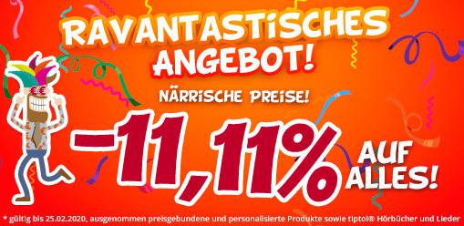 Helau und Alaaf, tolle Tage im Ravensburger Online Shop! Närrische Preise zur Karnevals-, Fasnets- oder Faschingszeit – für kurze Zeit 11,11% Rabatt auf alles! Aber Obacht, natürlich gilt auch hier: Am Aschermittwoch ist alles vorbei!