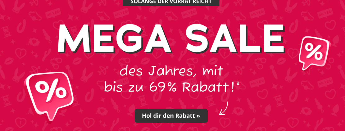 Unser größter Sale des Jahres bietet dir die Gelegenheit, Dessous, Sextoys und ausgewählte Drogerieprodukte aus unserem Erotiksortiment zu besonders günstigen Preisen zu entdecken.
