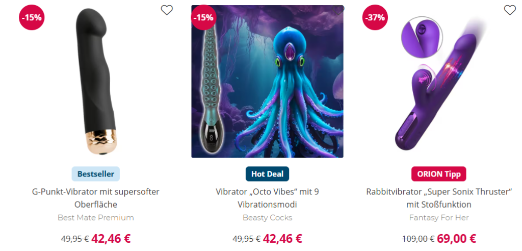 Im ORION Erotikshop gibt es nur für kurze Zeit bis zu 53% Rabatt auf Vibratoren!