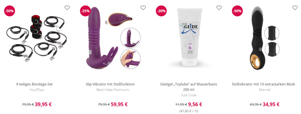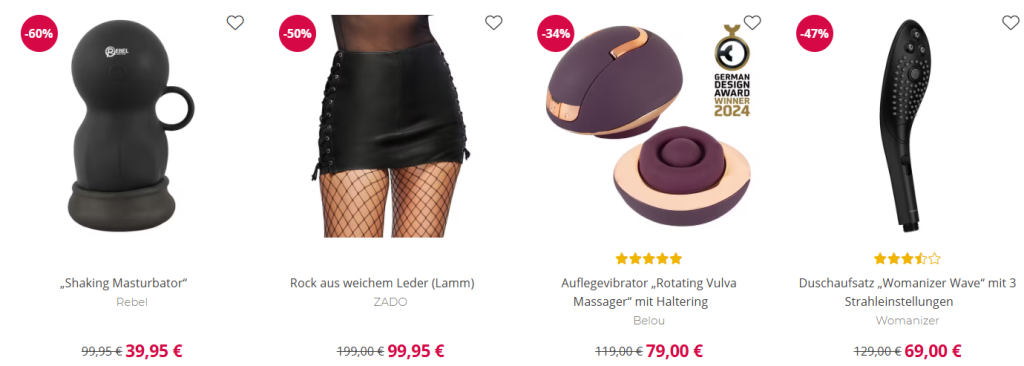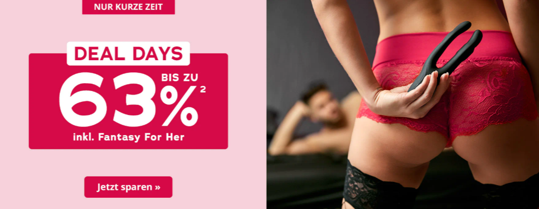 Jeden Monat ist es soweit: Für 1 Woche gibt es unschlagbare Rabatte auf ausgewählte Highlights – auch auf beliebte Marken! Ob verführerische Dessous, aufregende Toys oder sinnliche Pflege – spare und genieße. Hier könnt ihr bis zu 63% sparen!