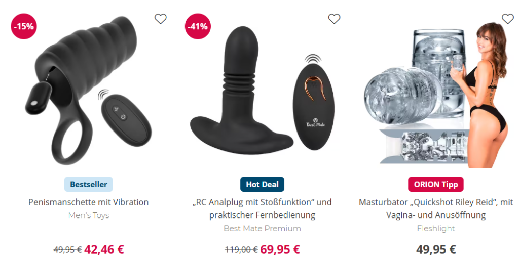 NUR FÜR KURZE ZEIT und nur online gibt es im Orion Erotikshop 15% Rabatt auf Männertoys!
