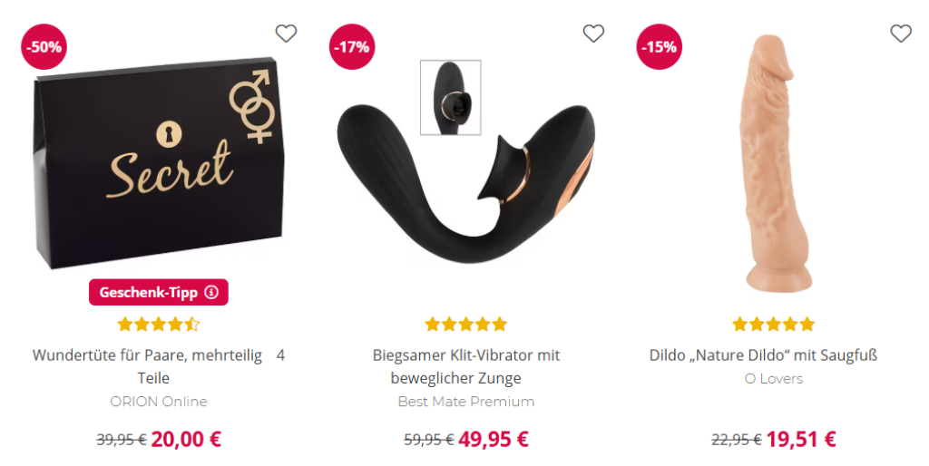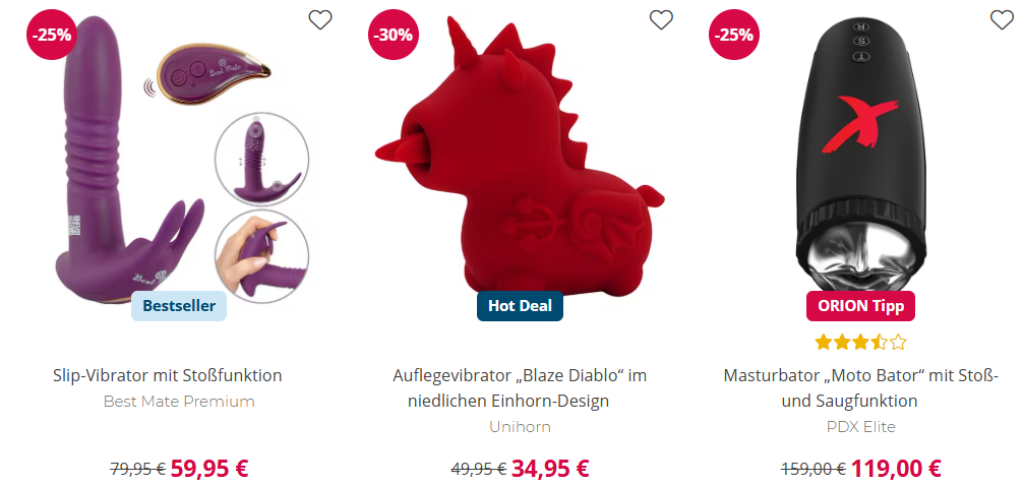 NUR FÜR KURZE ZEIT und nur online gibt es im Orion Erotikshop mindestens 15% Rabatt auf Sextoys!