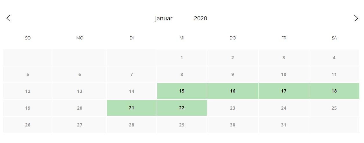 Eine Lieferung kann an einem der grünen Tage erfolgen: