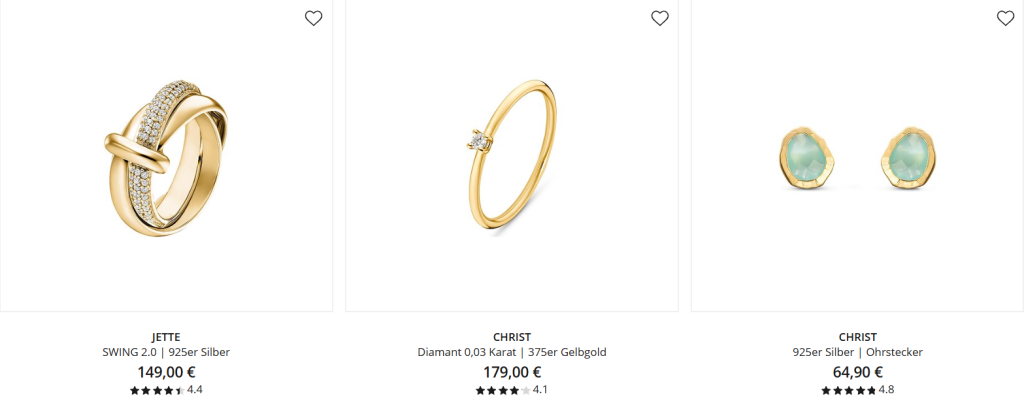 22% Rabatt auf ausgewählte Produkte der Marken CHRIST, Guia, Yamoko, FAVs, GMK, Guido Maria Kretschmer, JETTE, Live Diamond, Chiara Ferragni, La Petite Story, Morellato, Karl Lagerfeld, Maserati Schmuck, Daniel Wellington Schmuck,