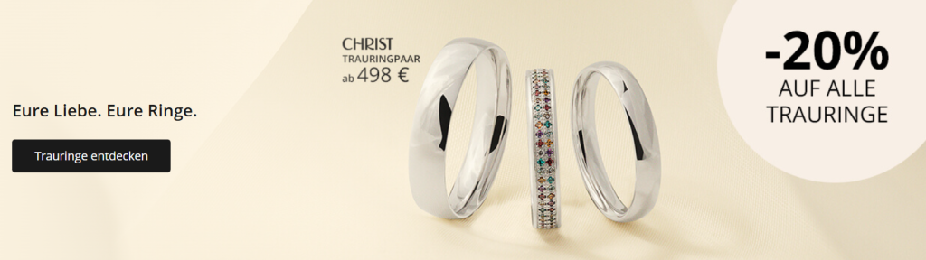 20% Rabatt auf ausgewählte Produkte der Marken CHRIST, Sector, Guia,Yamoko, JETTE, Live Diamond,
