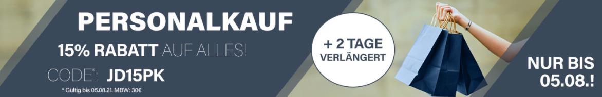 NUR NOCH KURZE ZEIT – bei Jeans Direct könnt ihr euch aktuell im Personalkauf – 15% Rabatt sichern! Gültig auf das gesamte Sortiment! Code: JD15PK