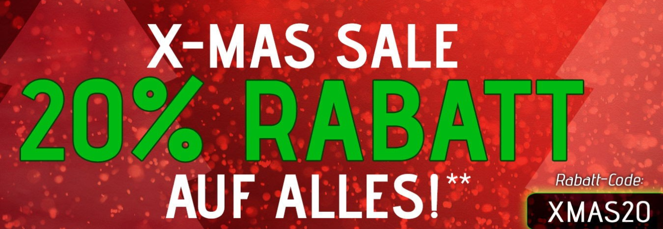 NUR NOCH FÜR KURZE ZEIT bekommt ihr im X-MAS SALE 20% Rabatt auf Alles – Nutzt dazu den Code: XMAS20