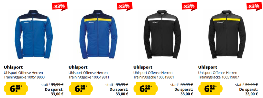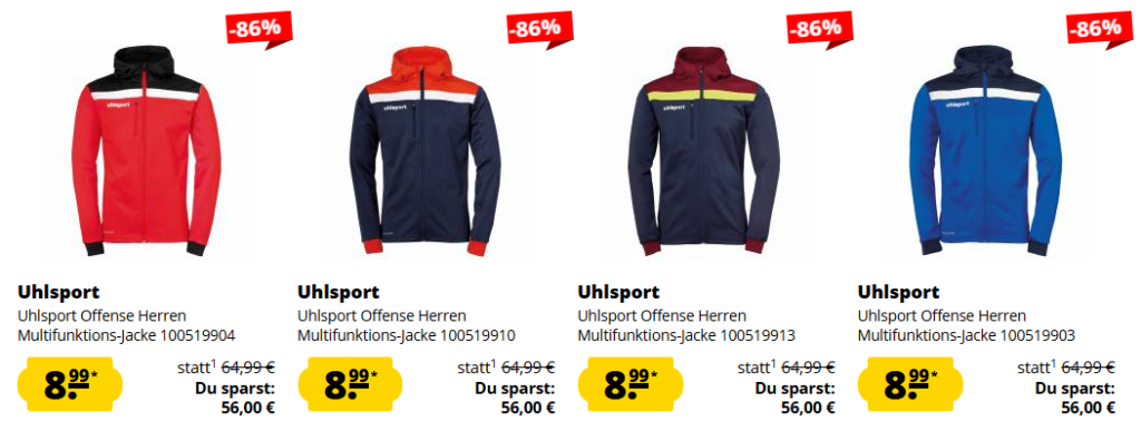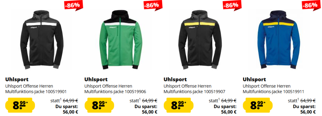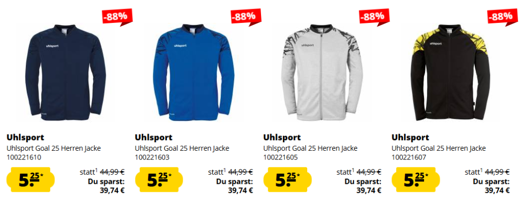 Bei SportSpar.de gibt es aktuell die Uhlsport Neuheiten Sale mit bis zu 89% Rabatt! Ihr zahlt ab 6,99€ statt 64,99€ zzgl. Versand! Ersparnis: bis 89%