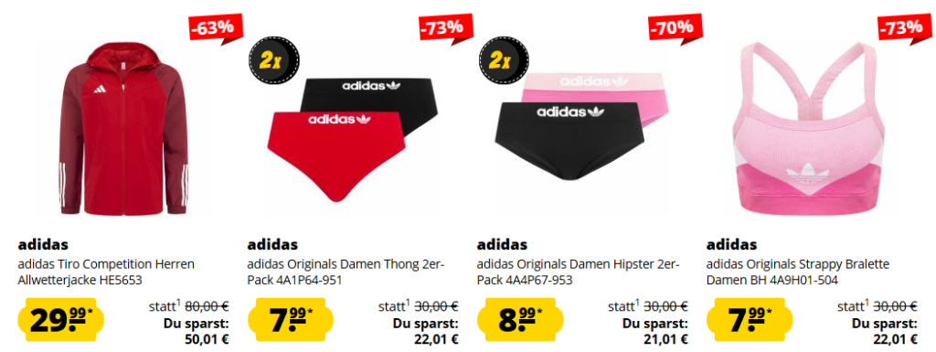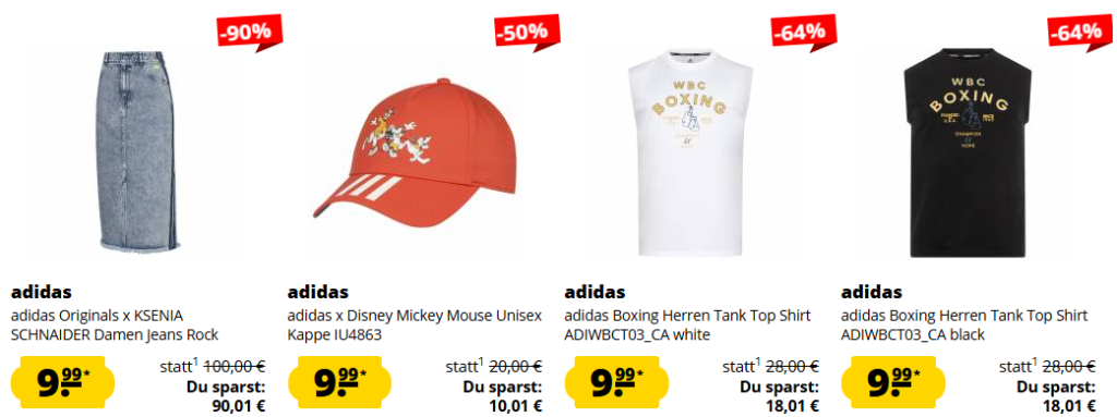 Bei SportSpar.de gibt es aktuell den ADIDAS ULTIMATE SALE mit bis zu 86% Rabatt! Artikel ab 9,99€ zzgl. Versand!