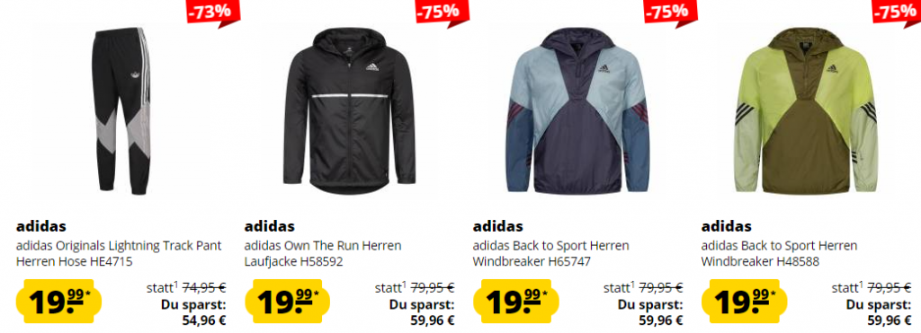 Bei SportSpar.de gibt es aktuell den Adidas Herren Mega-Sale – bis zu 75% Rabatt! Artikel ab 13,99€ statt 69,95€ – Ersparnis: bis 75%
