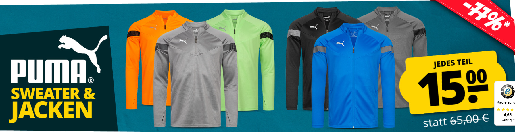 Puma Aktion bei SportSpar.de – aktuell gibt es Sweater & Jacken mit 77% Rabatt! Jedes Teil kostet 15€ statt 65€ zzgl. Versand!